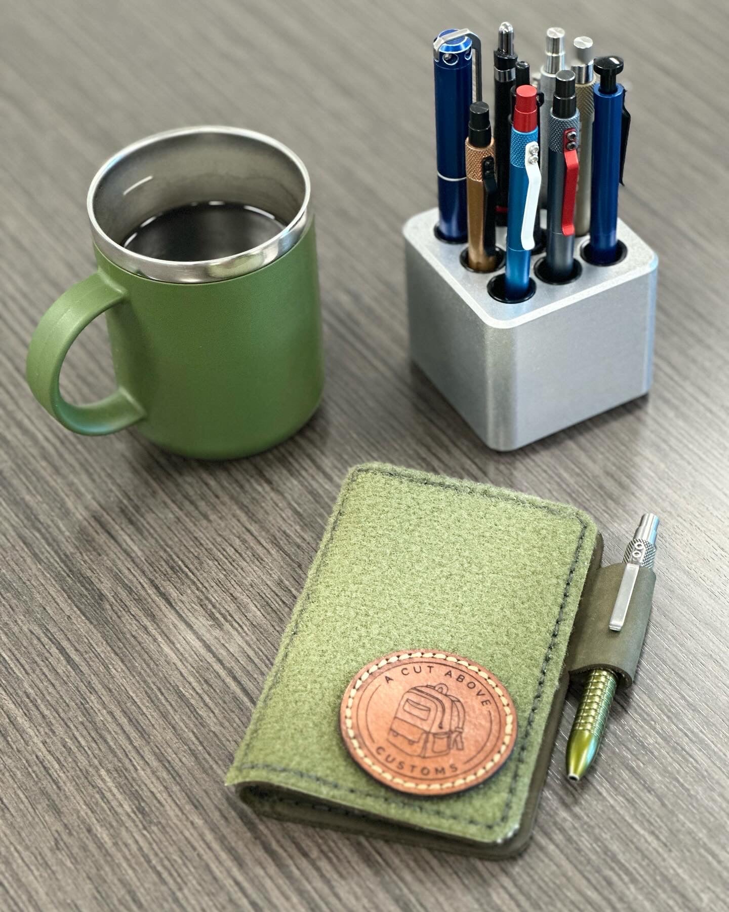 Custom made from genuine leather, perfect for Field Notes style notebooks. Velcro options as well.